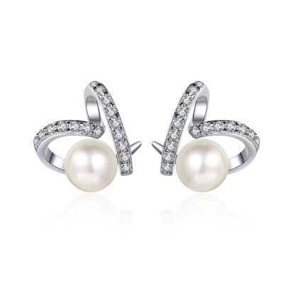 【莫桑鑽】32分淡水珍珠心形S925銀鍍鉑金耳環
