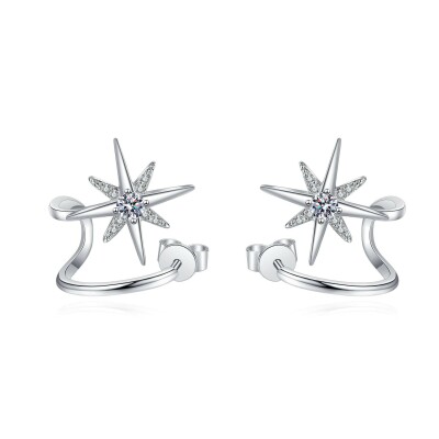 【莫桑鑽】28分雪花六芒星S925銀鍍鉑金耳環