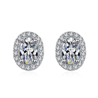 【莫桑鑽】1克拉四爪圓鑽橢圓S925銀鍍鉑金耳環