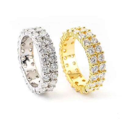 【莫桑鑽】三排鑽滿天星男女同款S925銀鍍金戒指