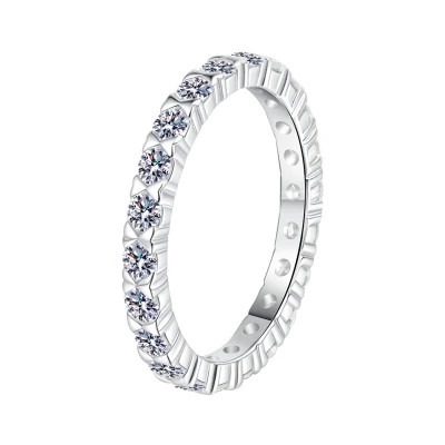 【莫桑鑽】1.32克拉整圈內嵌小圓鑽S925銀鍍鉑金戒指