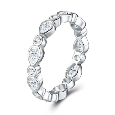 【莫桑鑽】小水滴梨形鑽拼接圓鑽S925銀鍍白金戒指