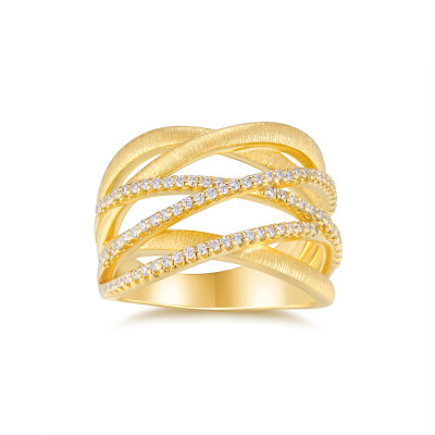 【莫桑鑽】高奢感交叉排鑽意大利拉絲七層電鍍厚金戒指