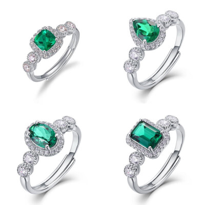 【培育祖母綠】五種形狀小圓包S925銀鍍白金開口戒指