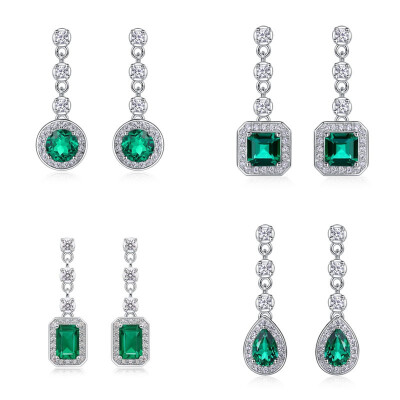 【培育祖母綠】五種形狀三鑽流蘇S925銀鍍白金耳環