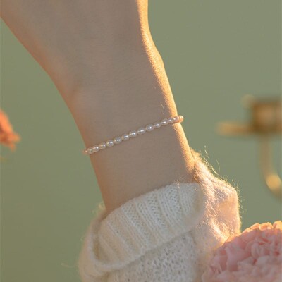 【天然珍珠】4.5mm小米珠S925銀鍍金手鏈