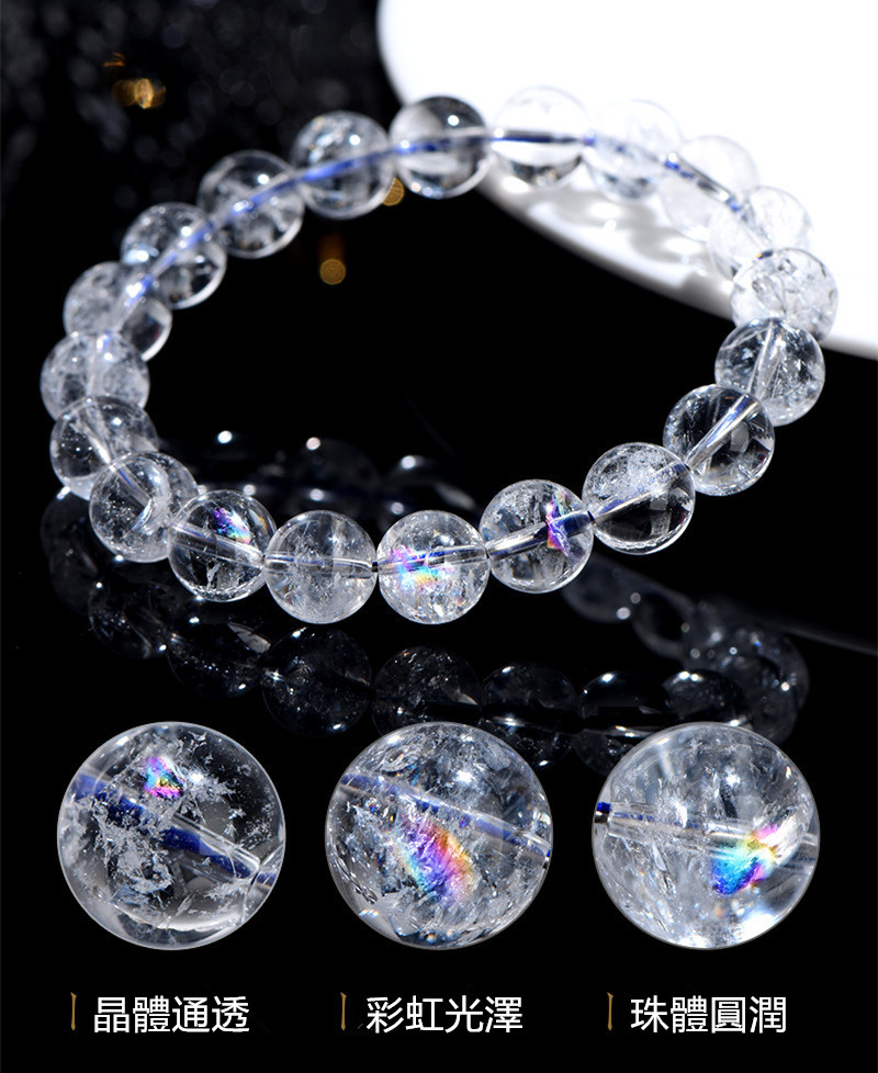 七彩阿賽斯特萊白水晶7-16MM圓珠手鏈(15-17CM帶彈力) 數量