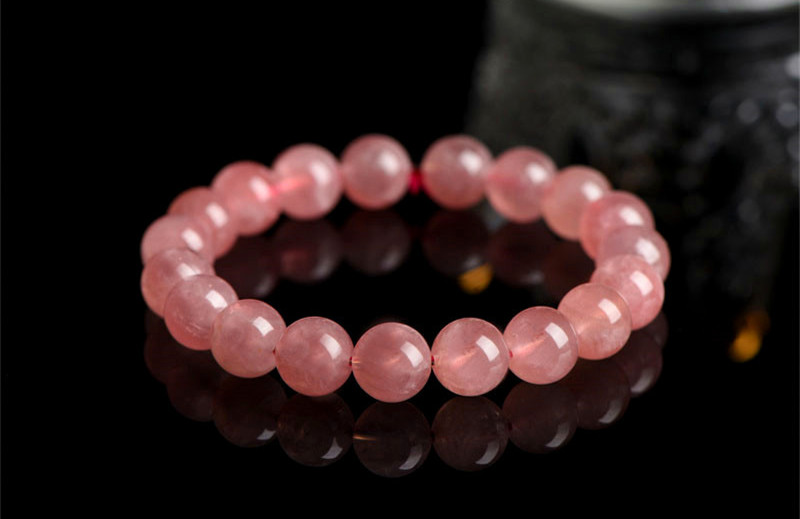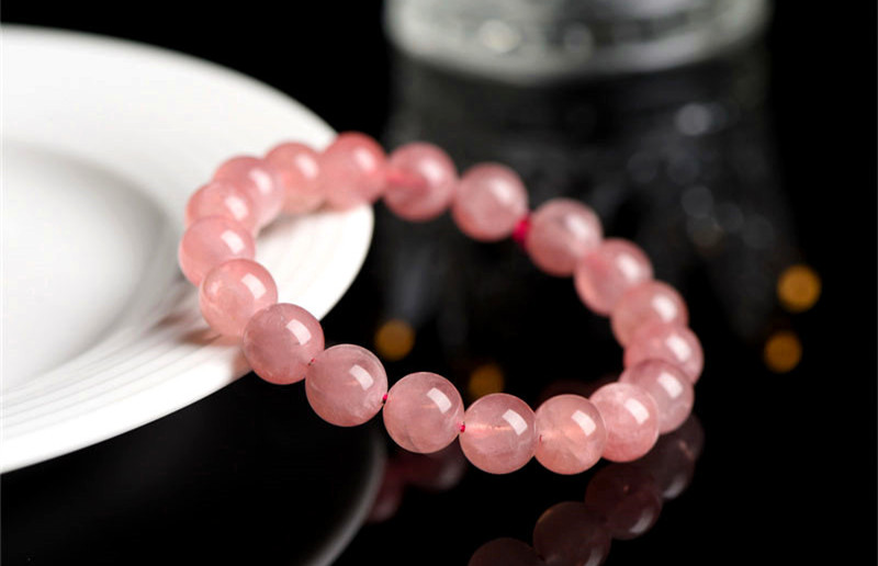 5A級馬達加斯加奶油體粉水晶7-15MM圓珠手鏈(15-17CM帶彈力) 數量