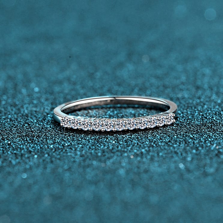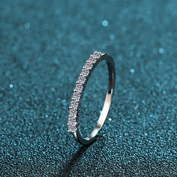 【莫桑鑽】單排微鑲款S925銀鍍鉑金戒指