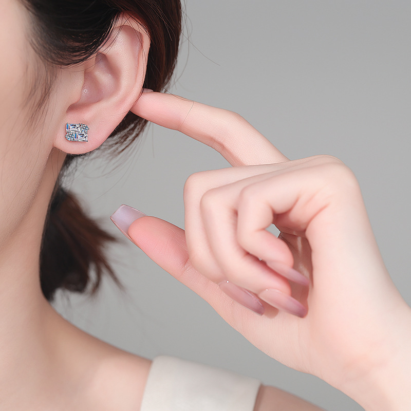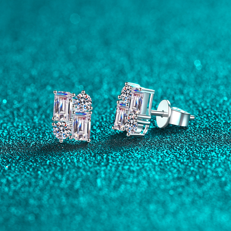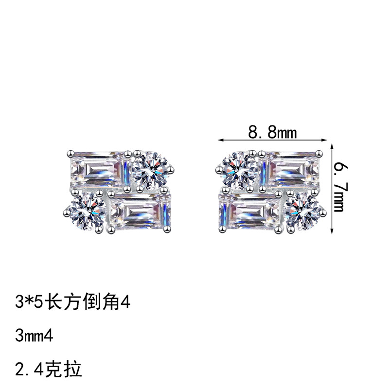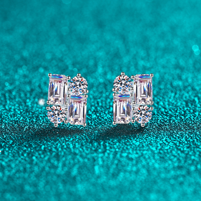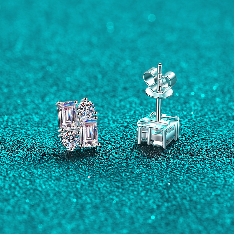 【莫桑鑽】2.4克拉時尚拼接S925銀鍍鉑金莫桑石耳環
