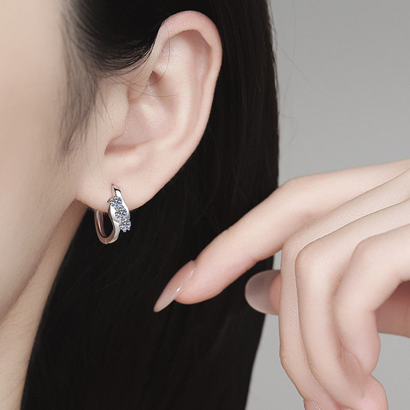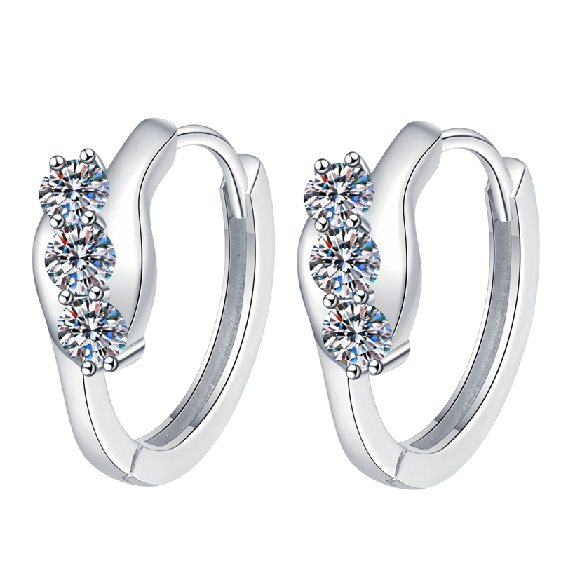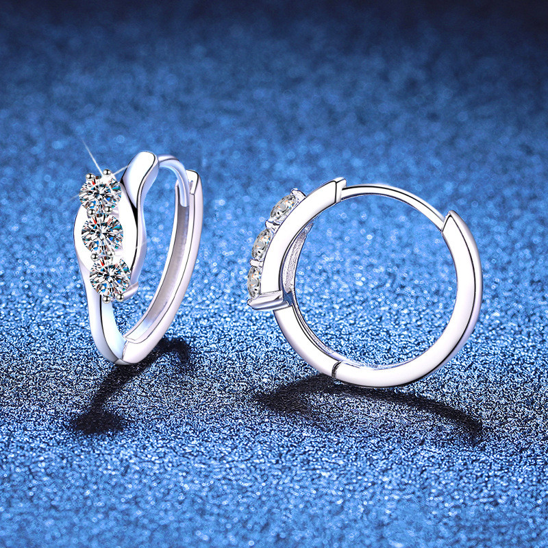 【莫桑鑽】60分三鑽耳圈S925銀鍍鉑金耳環