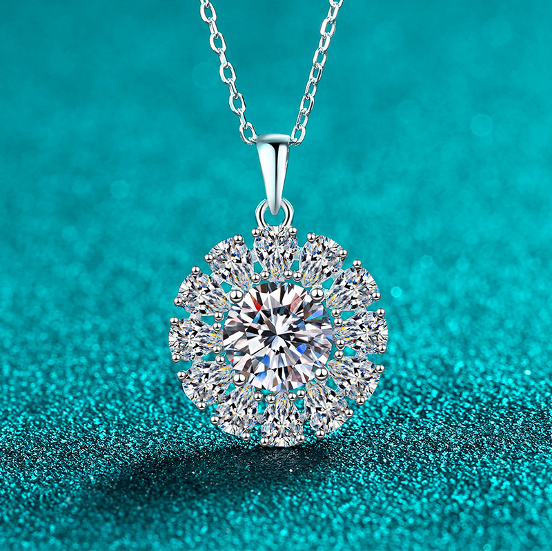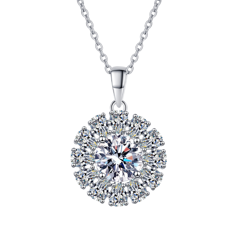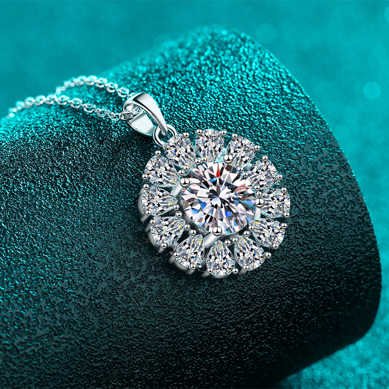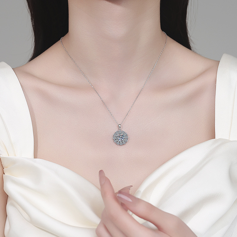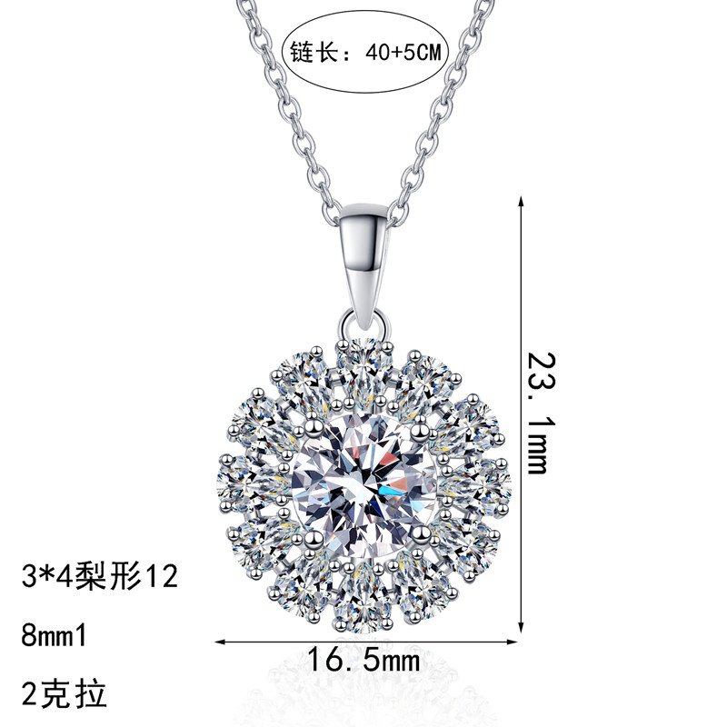 【莫桑鑽】清晨的陽光2克拉圓鑽梨形鑽包邊S925銀鍍鉑金項鏈