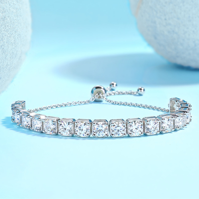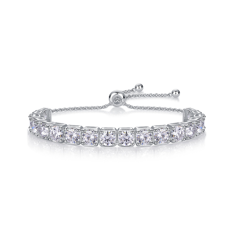 【莫桑鑽】18顆半圈網球手鐲S925銀鍍白金手鏈抽拉式14-21CM