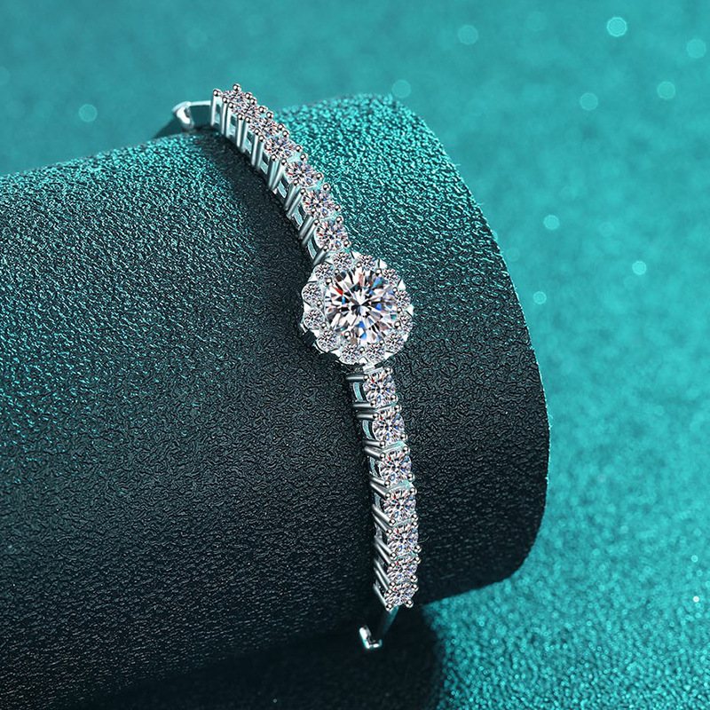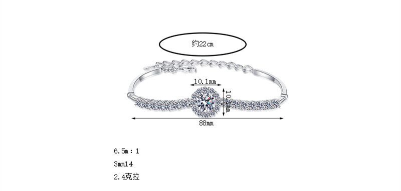【莫桑鑽】2.4克拉圓包排鑽S925銀鍍鉑金莫桑石手鏈