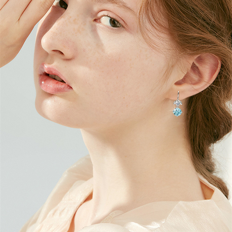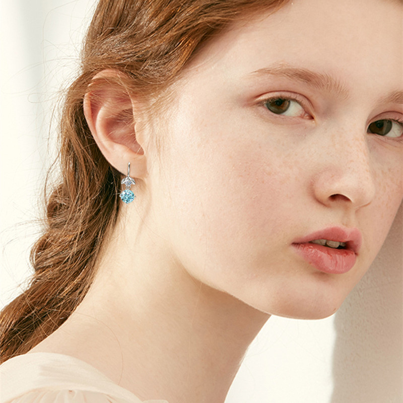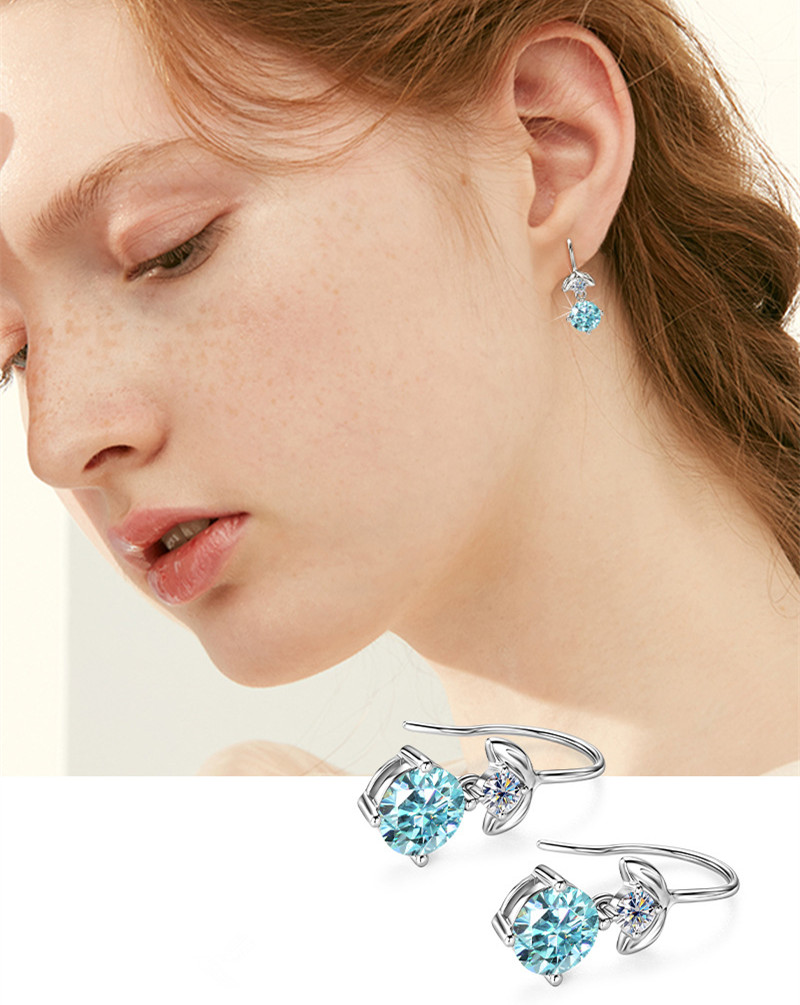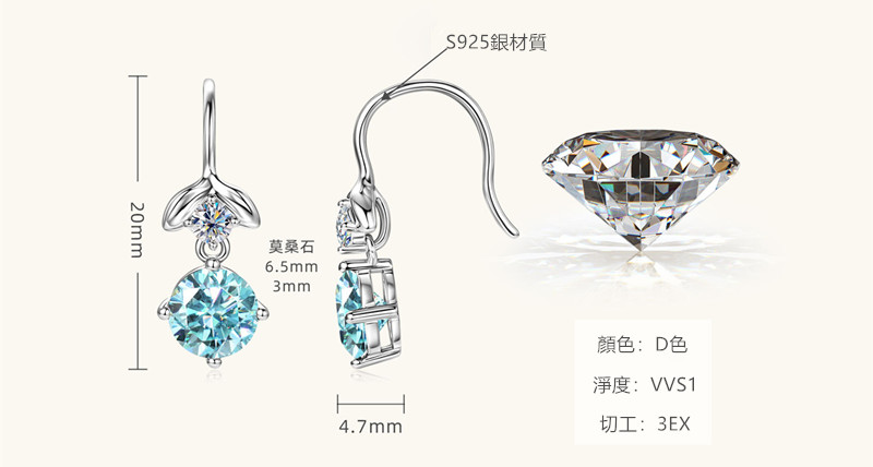 【莫桑鑽】人魚公主1.1克拉+1.1克拉海藍色莫桑鑽S925銀鍍白金耳環