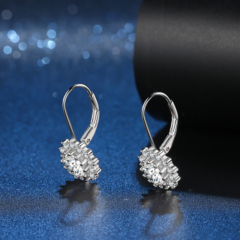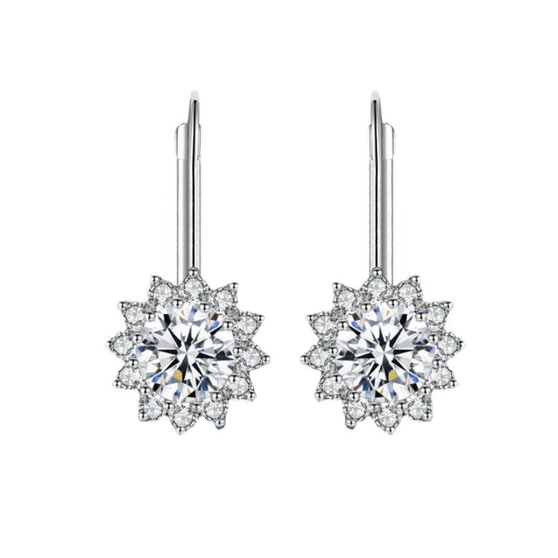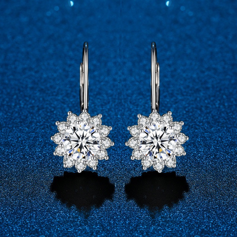 【莫桑鑽】1克拉+1克拉太陽花耳鉤式S925銀鍍鉑金莫桑石耳環