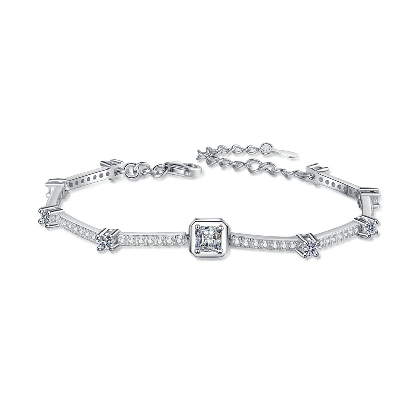 【莫桑鑽】小方糖1.88克拉星鏈S925銀鍍鉑金莫桑石手鏈16+4CM