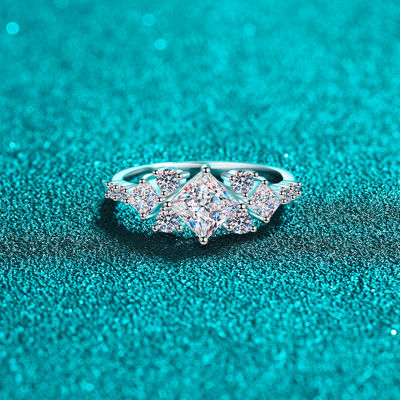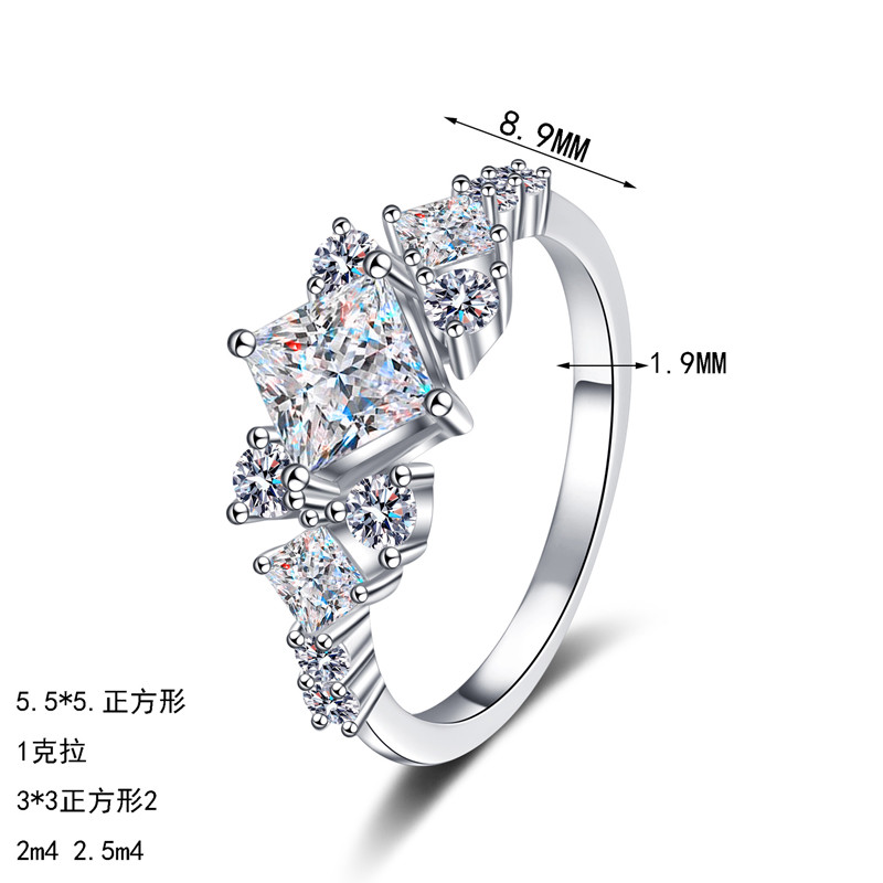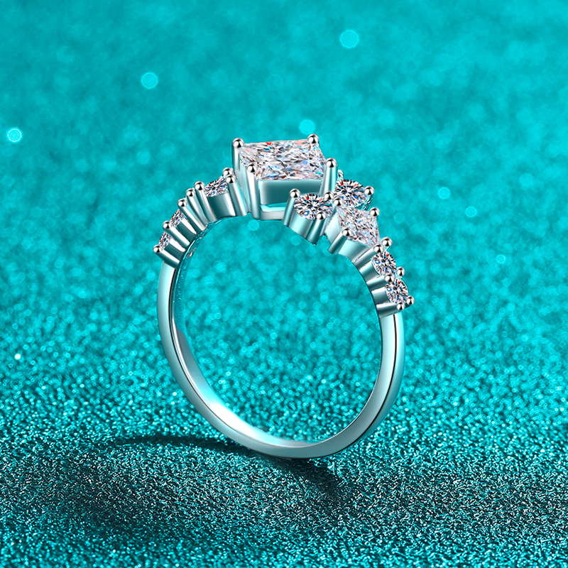【莫桑鑽】1克拉方鑽時尚拼接風S925銀鍍鉑金莫桑石戒指