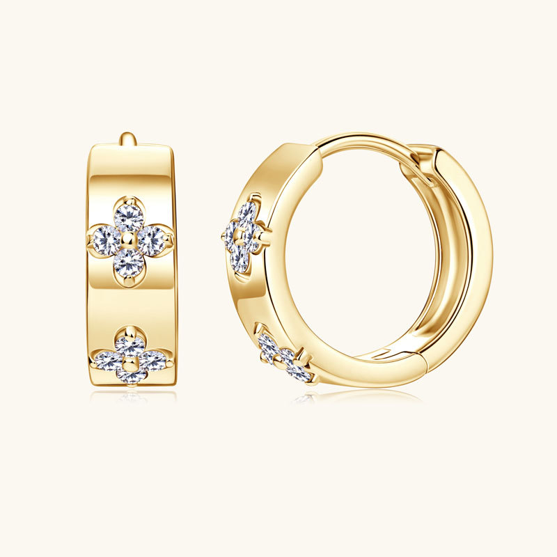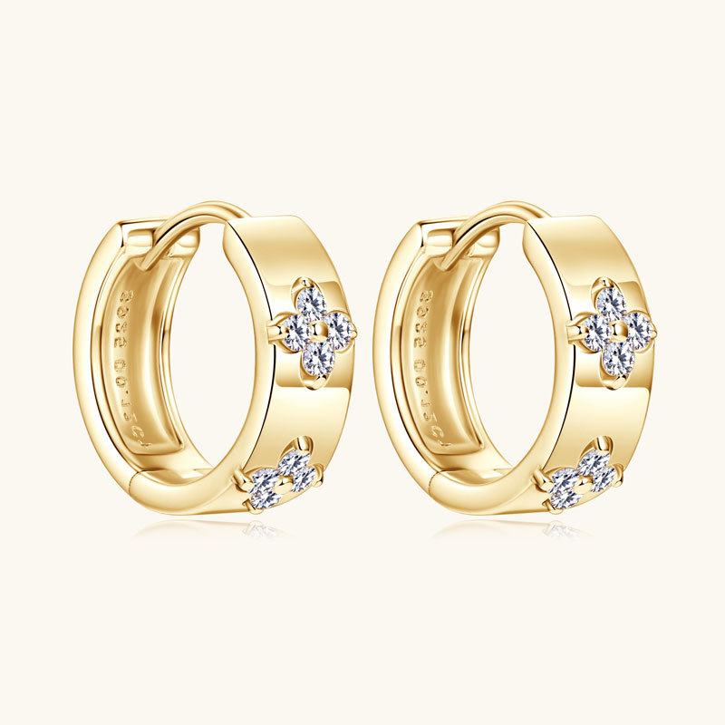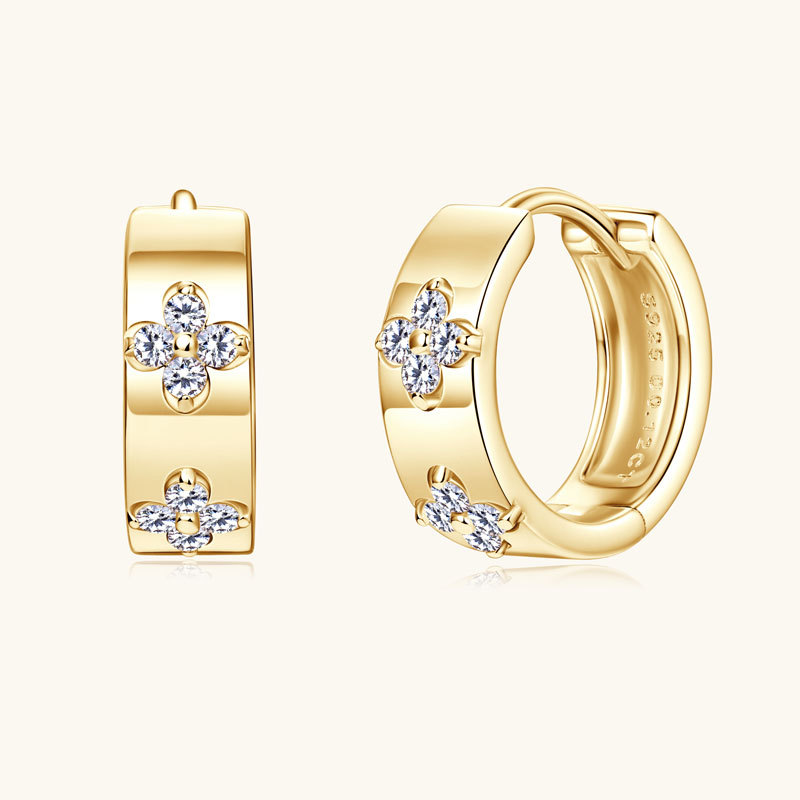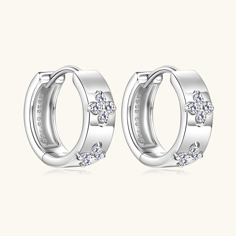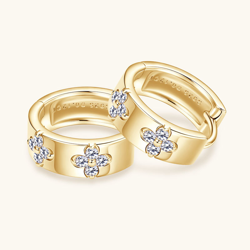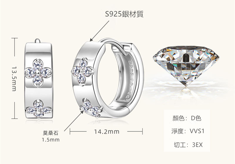 【莫桑鑽】金銀兩色雙花四葉草S925銀鍍鉑金耳環