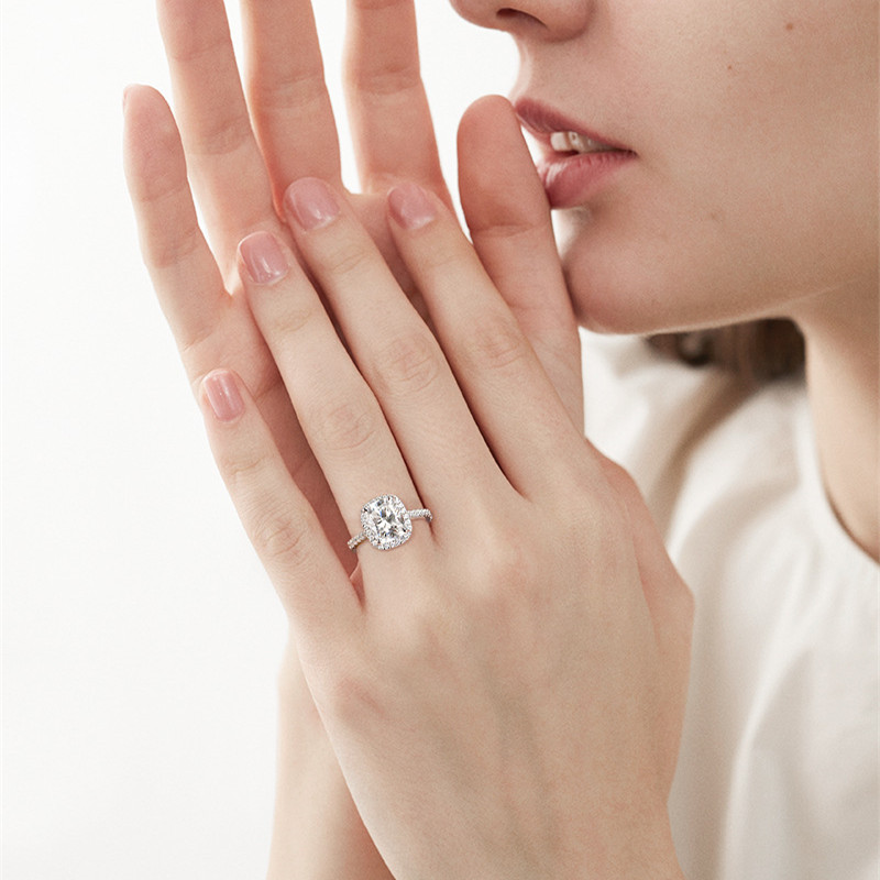 【莫桑鑽】4克拉枕形方糖S925銀鍍白金戒指