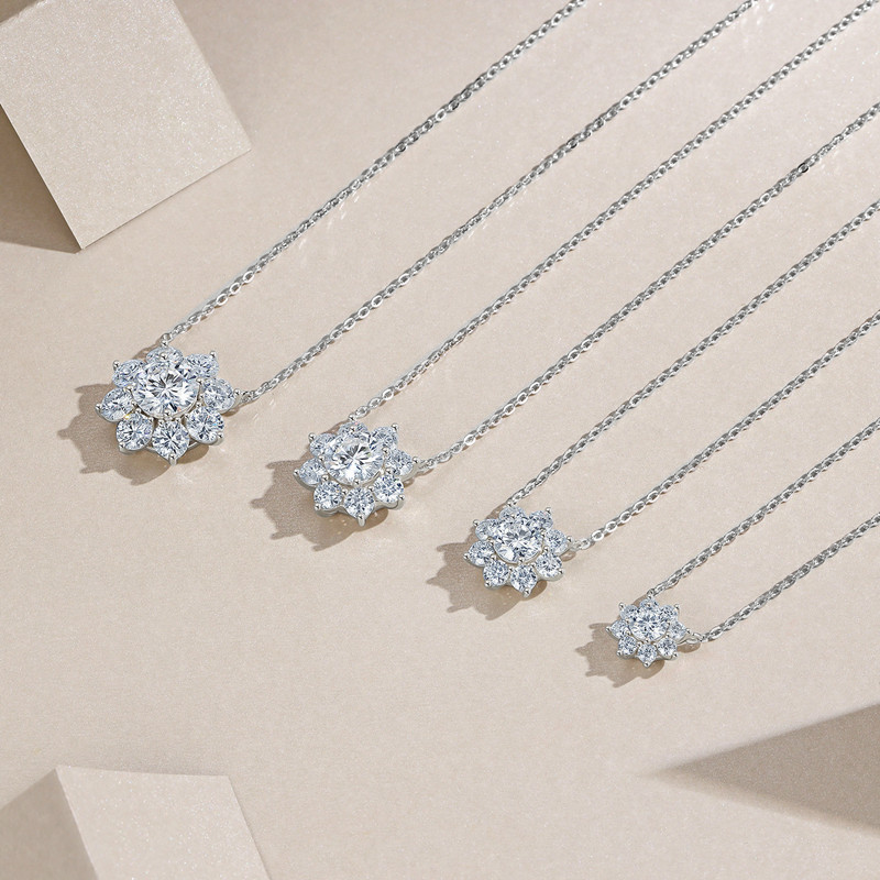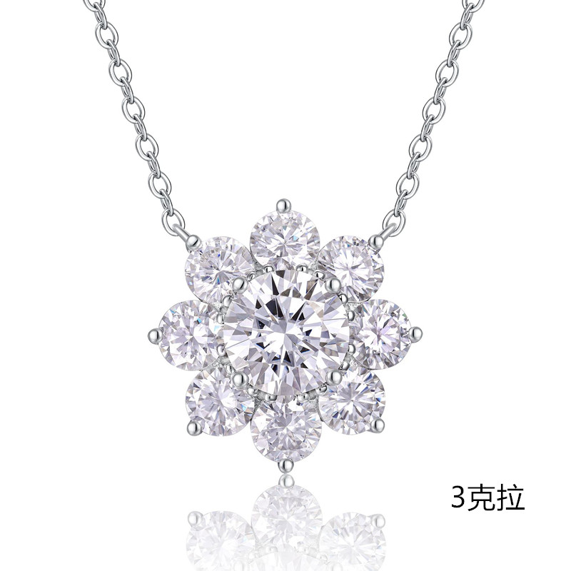 【莫桑鑽】0.5-3克拉八瓣花太陽花S925銀鍍鉑金項鏈 數量