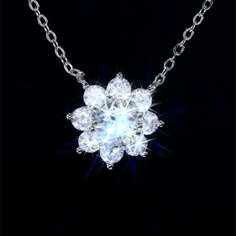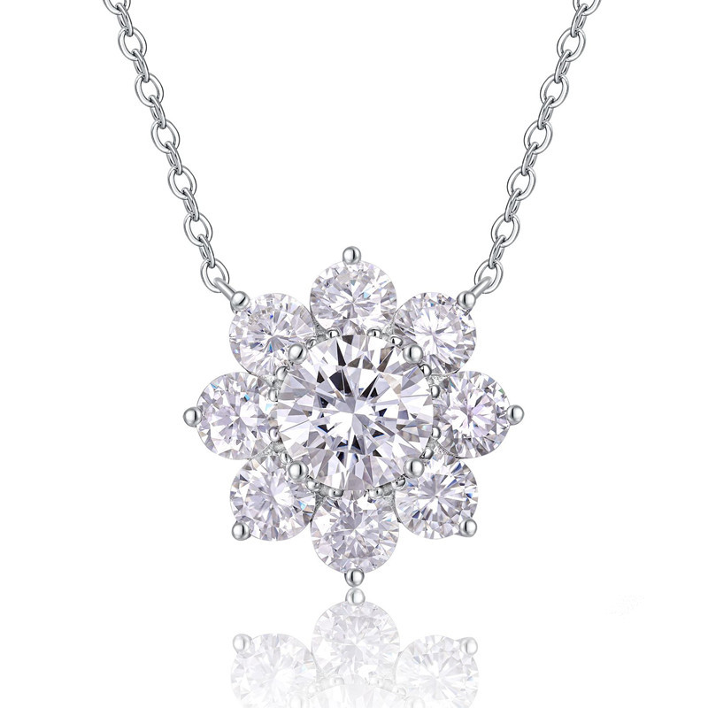 【莫桑鑽】0.5-3克拉八瓣花太陽花S925銀鍍鉑金項鏈