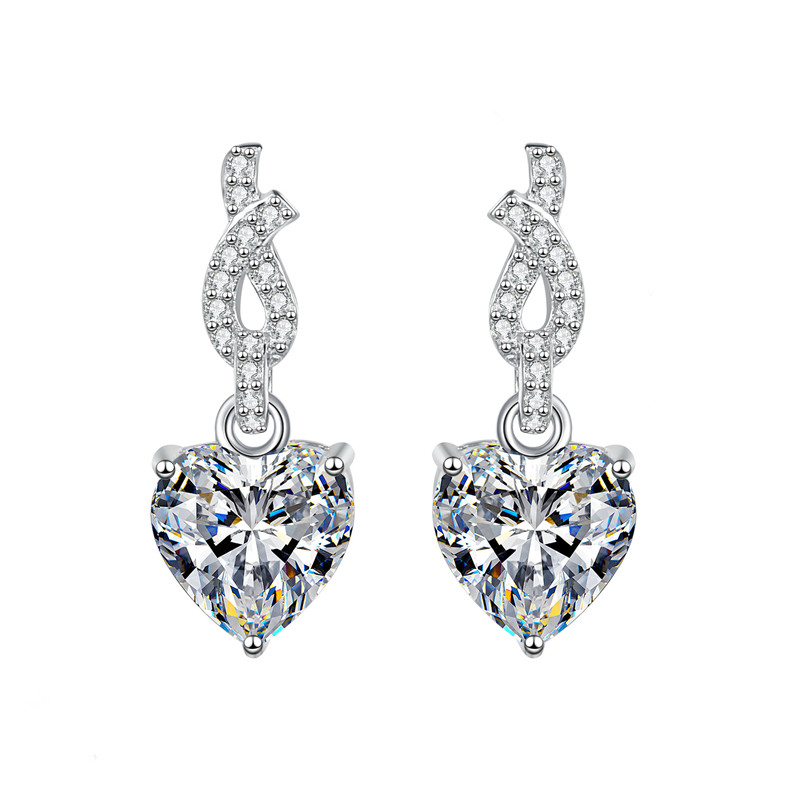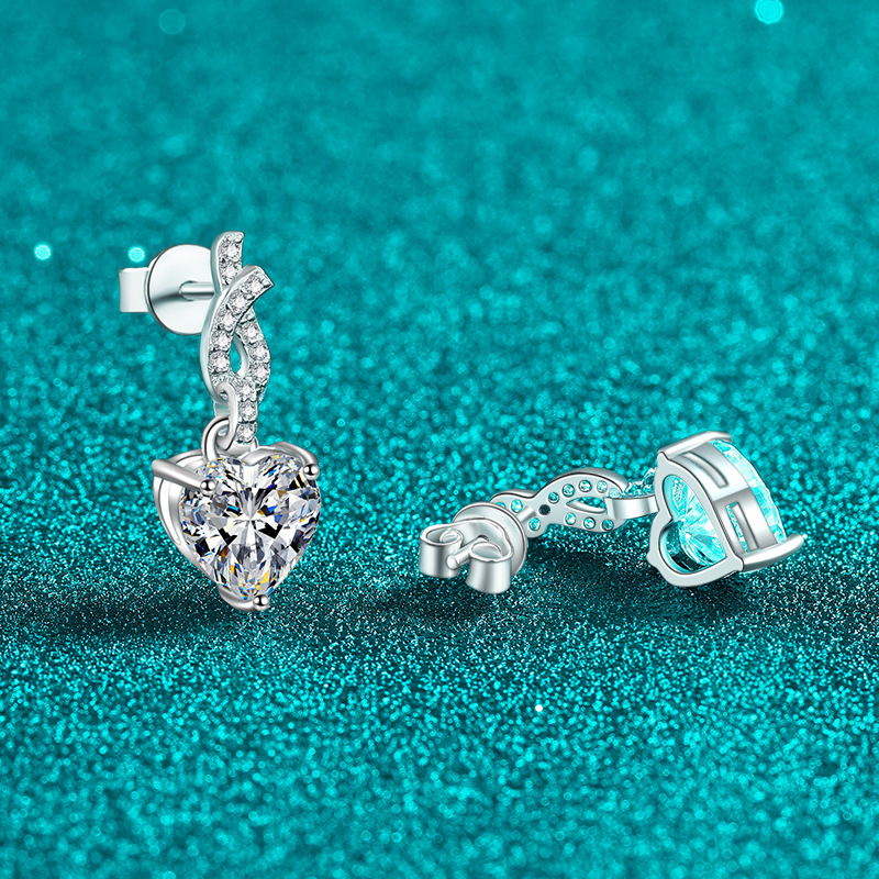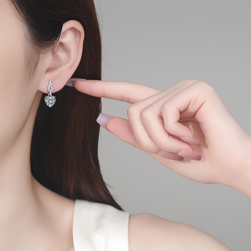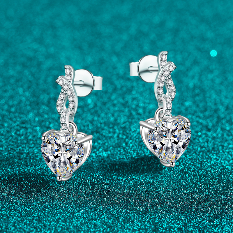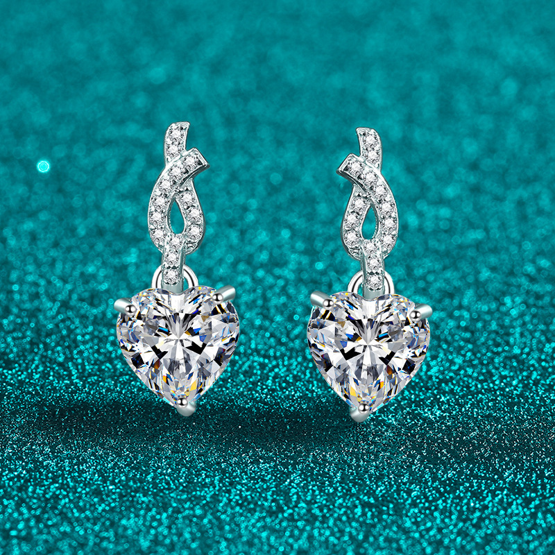 【莫桑鑽】2克拉+2克拉愛心鑽扭結S925銀鍍鉑金莫桑石耳環