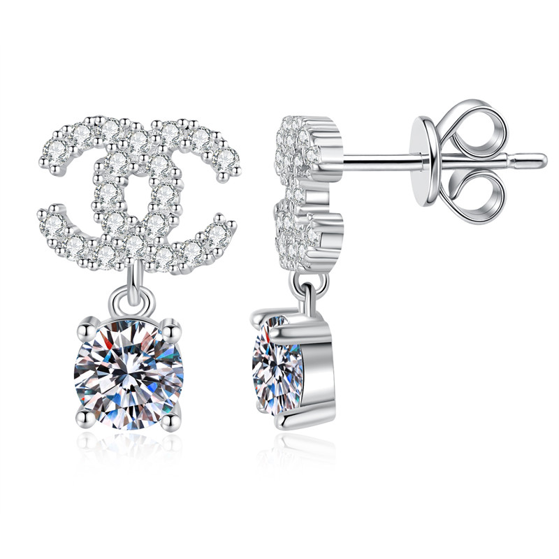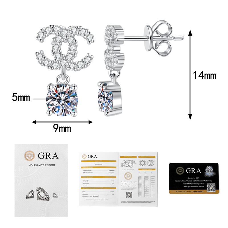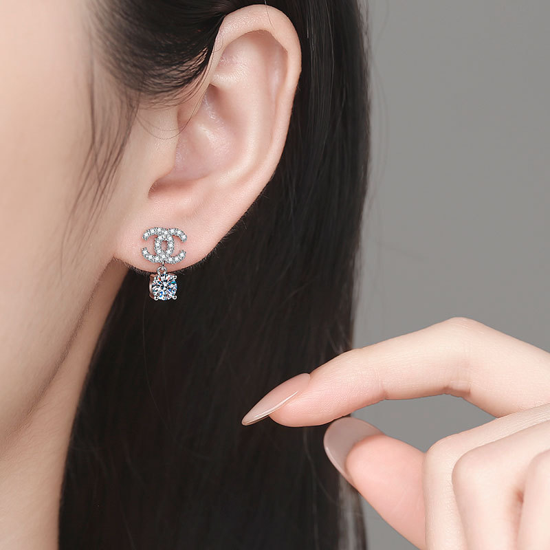 【莫桑鑽】小香風50分+50分主石S925銀鍍鉑金耳環