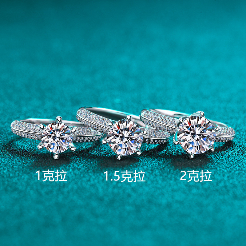 【莫桑鑽】半壁江山六爪銀S925銀鍍鉑金S925銀鍍鉑金戒指