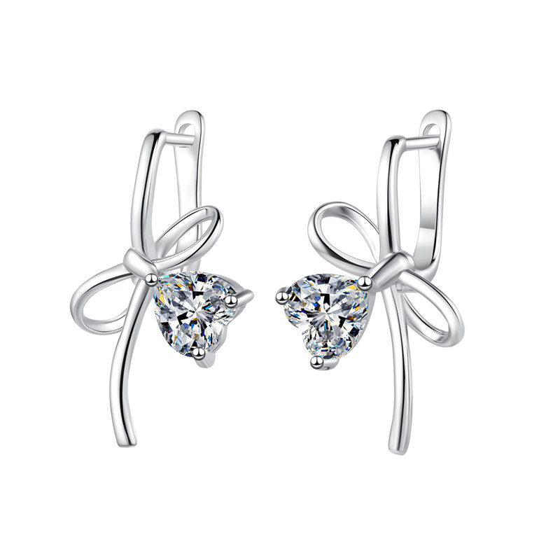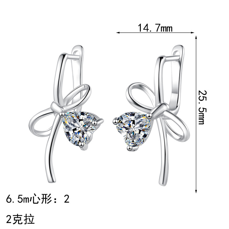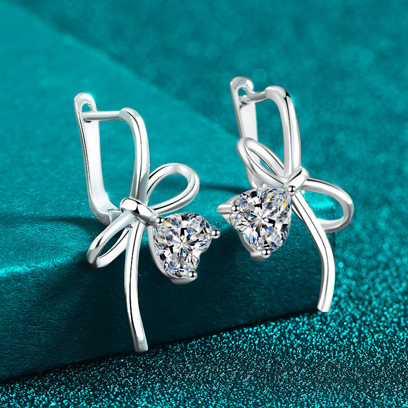 【莫桑鑽】1克拉+1克拉愛心蝴蝶結扣式S925銀鍍鉑金耳環