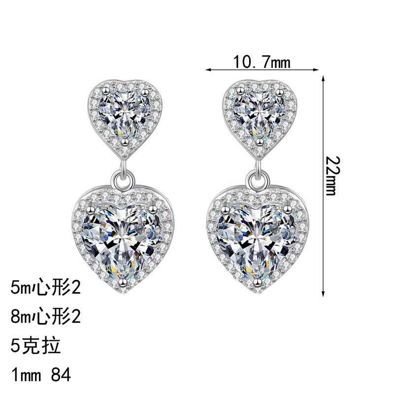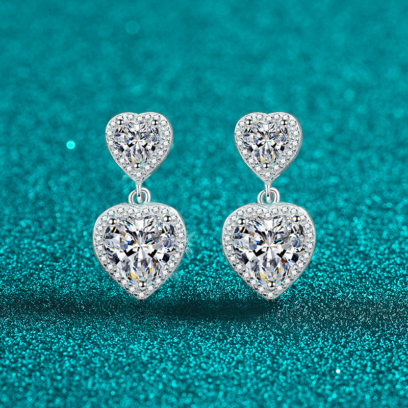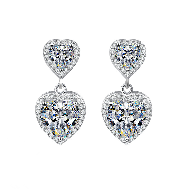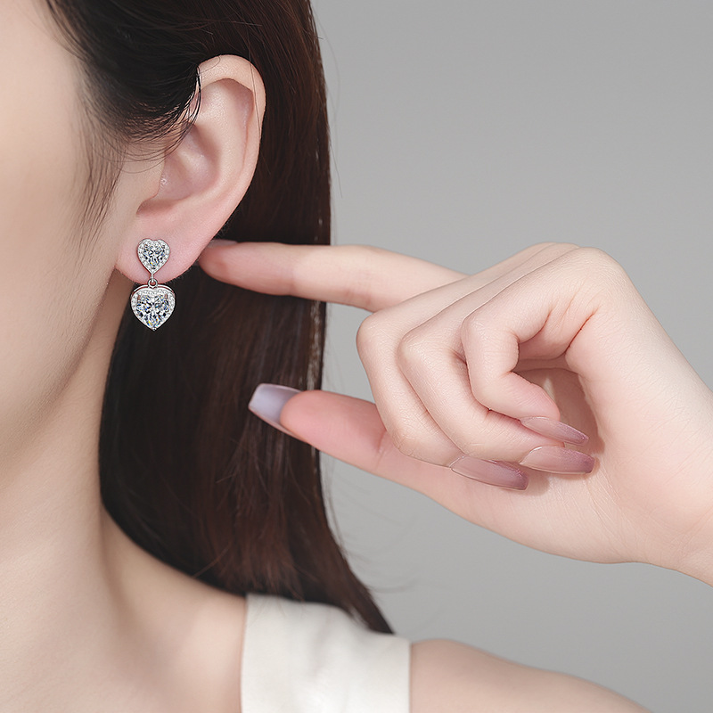 【莫桑鑽】2.5克拉+2.5克拉雙愛心S925銀鍍鉑金耳環