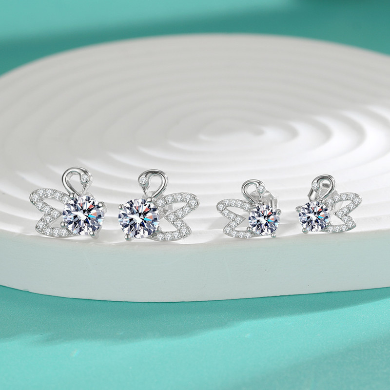 【莫桑鑽】優雅小天鵝S925銀鍍鉑金耳環 數量