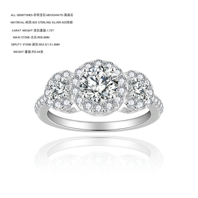【莫桑鑽】圓圓滿滿1.72克拉全莫桑S925銀鍍白金莫桑石戒指