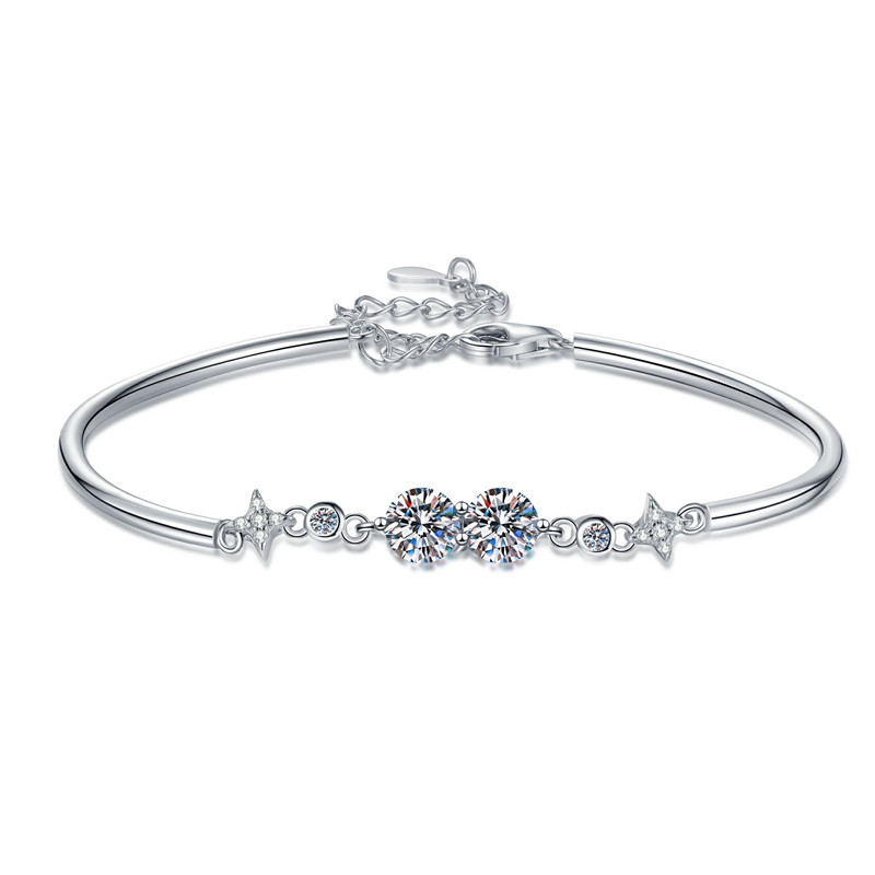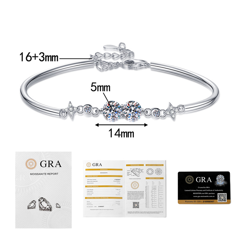 【莫桑鑽】雙子星50分+50分裸鑽S925銀鍍鉑金莫桑石手鏈16+3CM