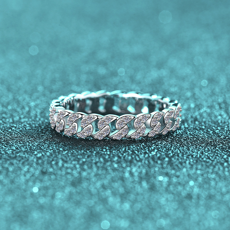 【莫桑鑽】44分滿鑽古巴鏈S925銀鍍鉑金莫桑石戒指
