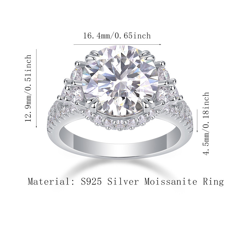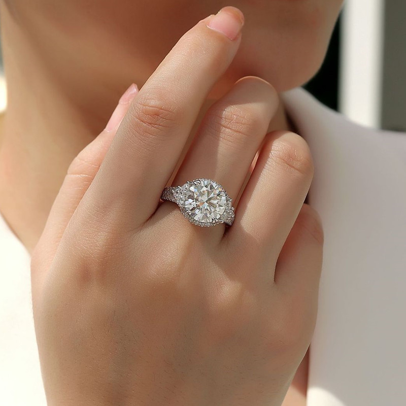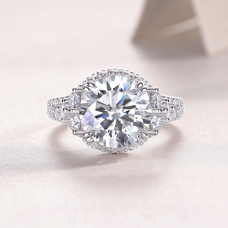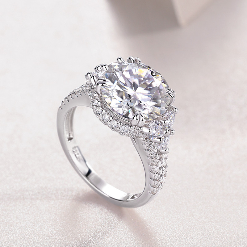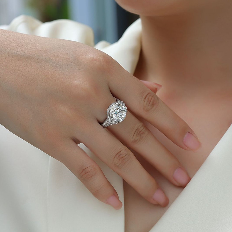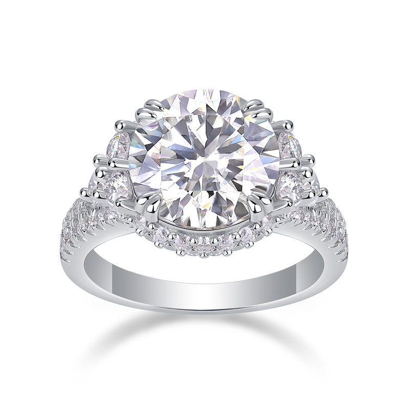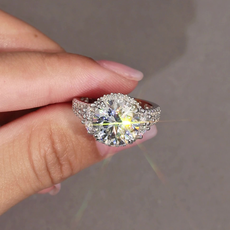 【莫桑鑽】5克拉+68粒雙排碎鑽戒臂S925銀鍍白金戒指
