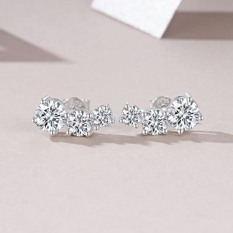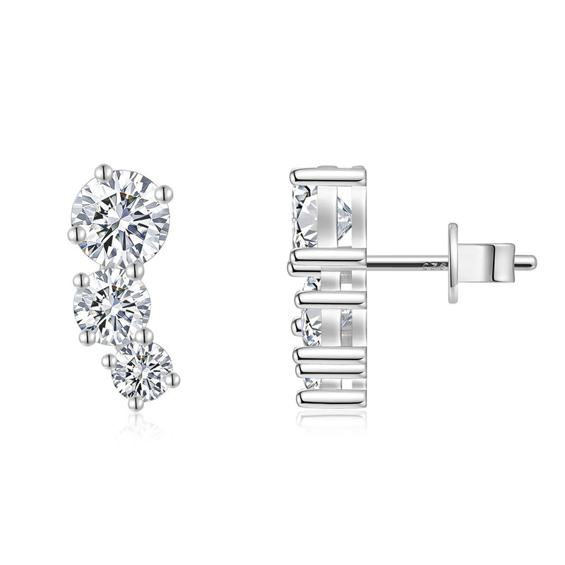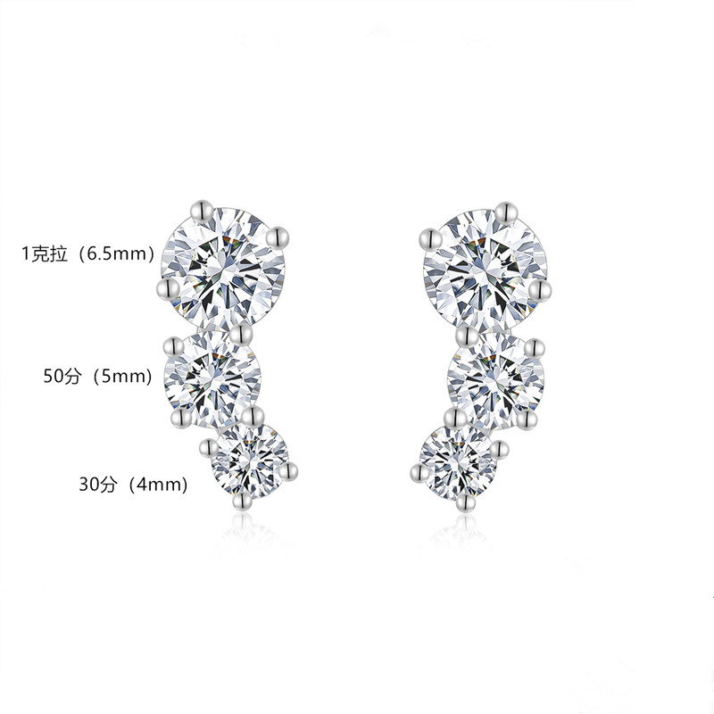 【莫桑鑽】3.6克拉弧形三鑽S925銀鍍白金耳環