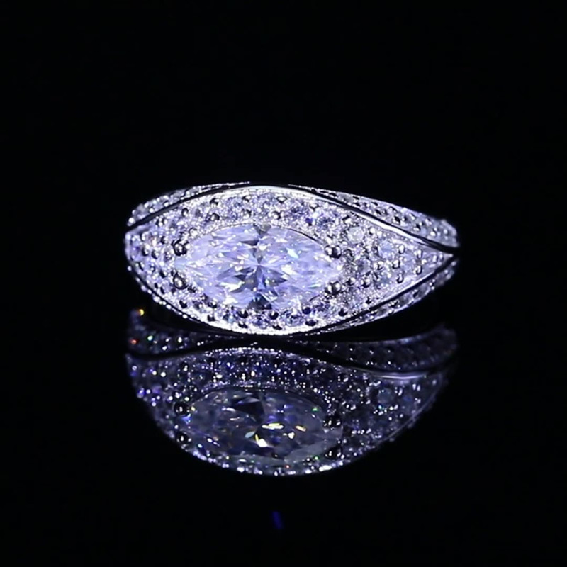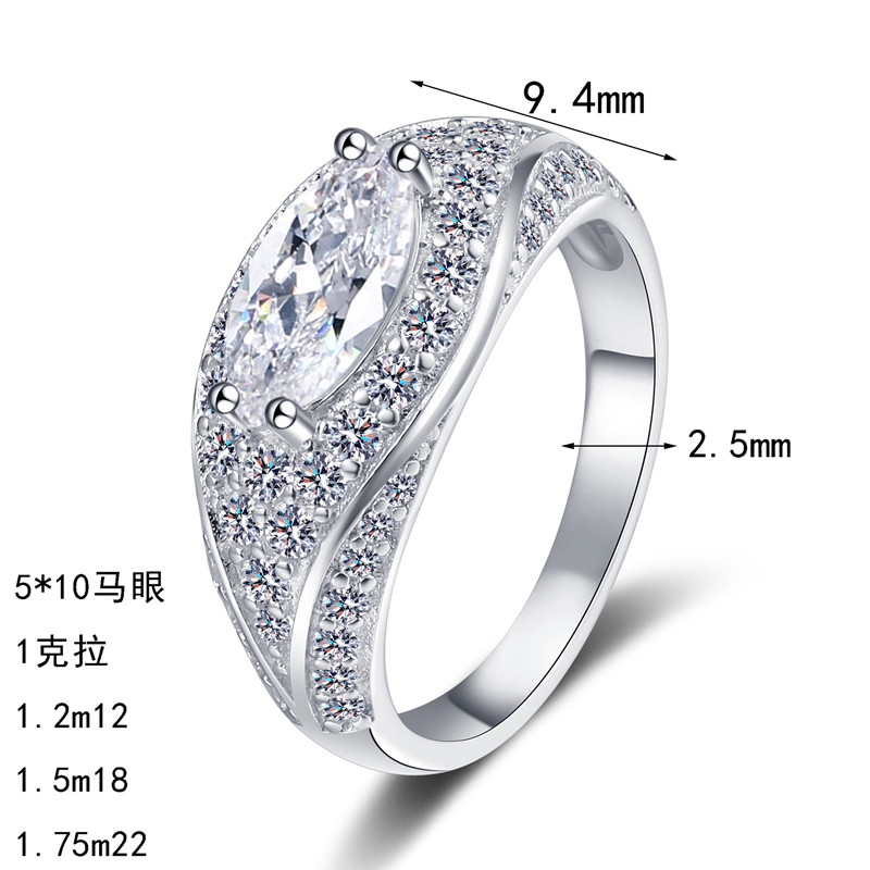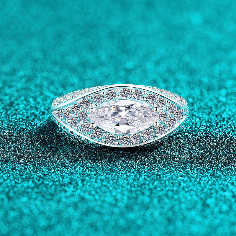 【莫桑鑽】1克拉馬眼鑽豪華全包滿鑽S925銀鍍鉑金戒指