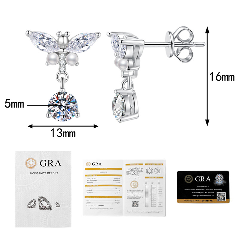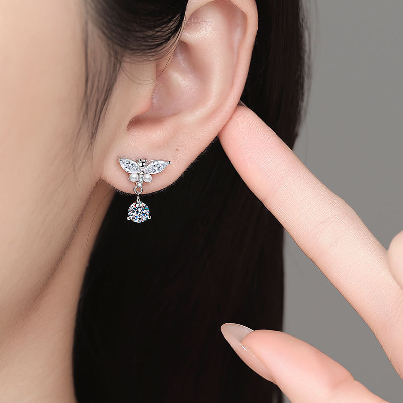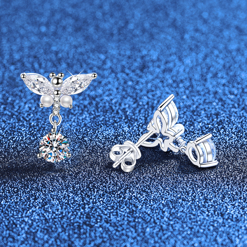 【莫桑鑽】馬眼鑽小蜻蜓50分+50分圓鑽S925銀鍍鉑金耳環