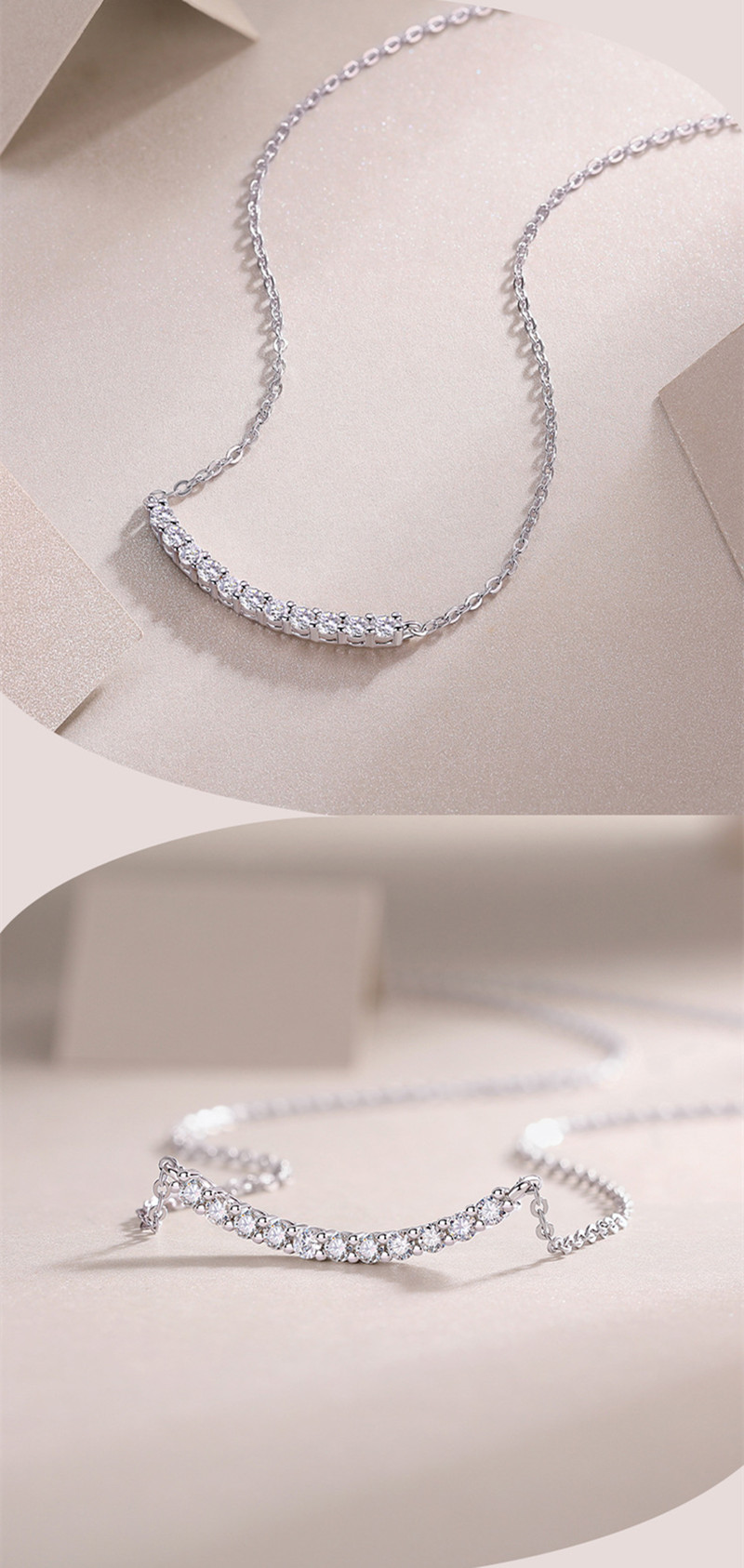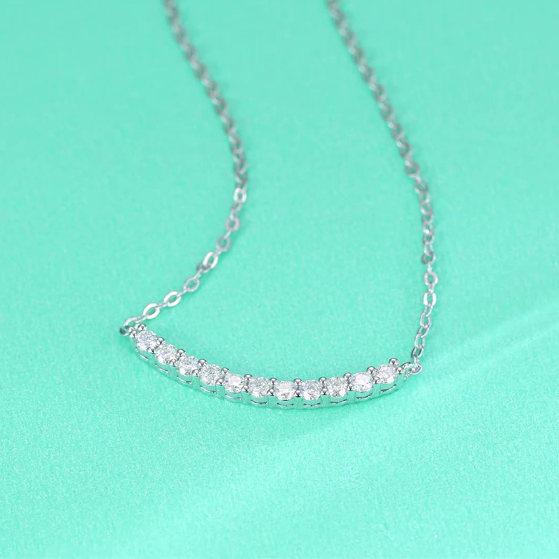 【莫桑鑽】笑臉6分*11顆S925銀鍍白金項鏈