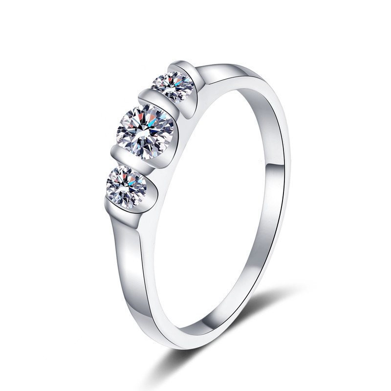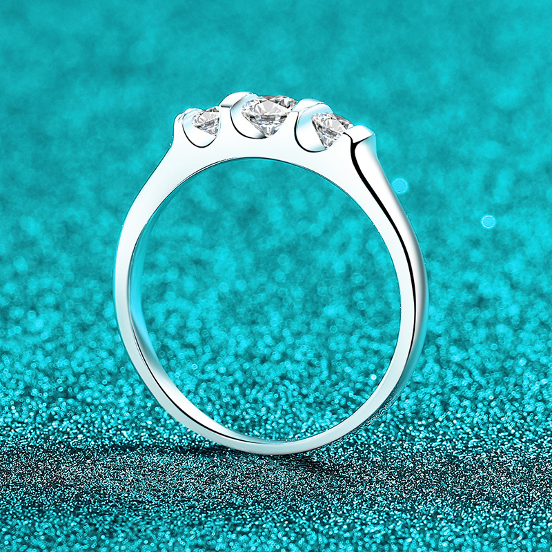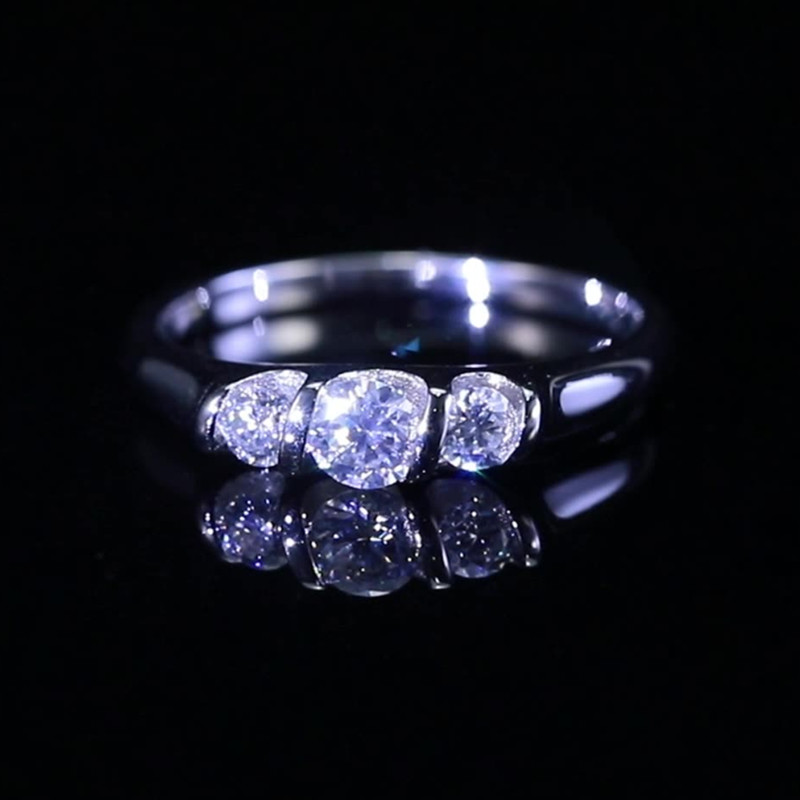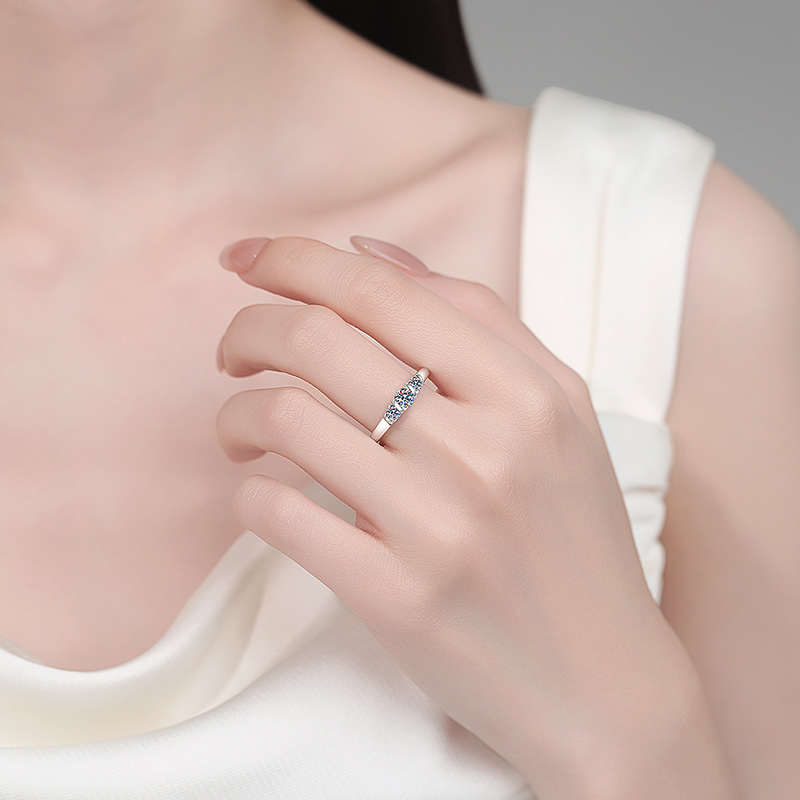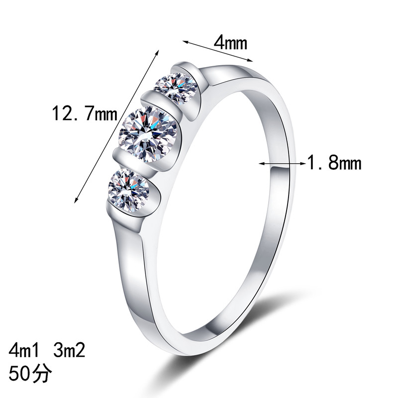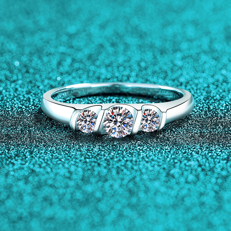 【莫桑鑽】低調款50分三小鑽S925銀鍍鉑金莫桑石戒指