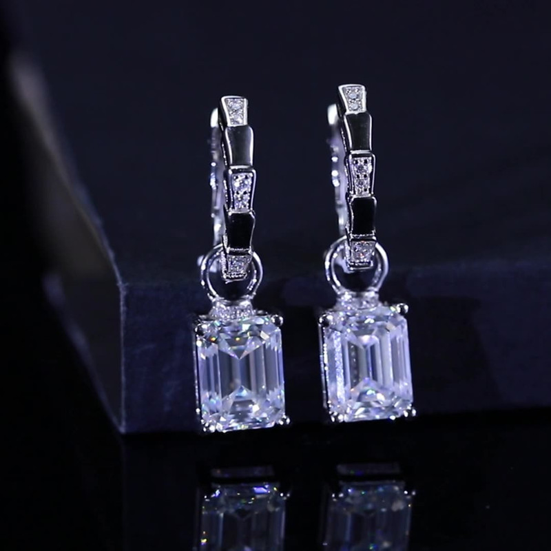 【莫桑鑽】可拆卸兩戴蛇骨扣2克拉+2克拉矩形鑽S925銀鍍鉑金耳環