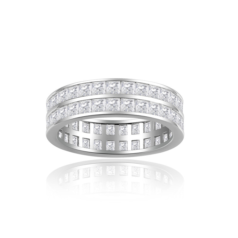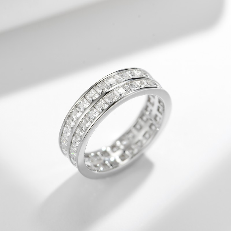 【莫桑鑽】4.32克拉雙層公主方鑽S925銀鍍白金戒指