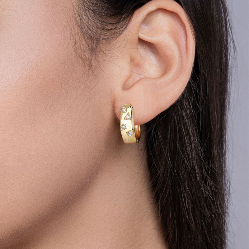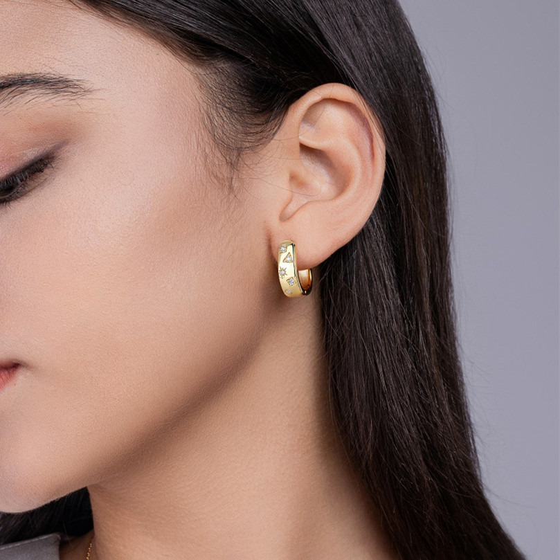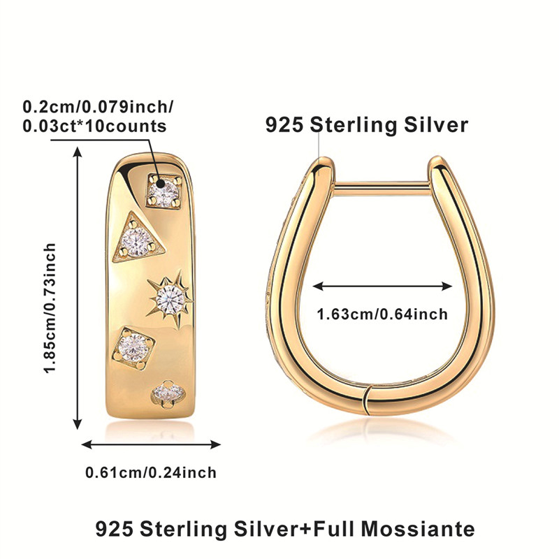 【莫桑鑽】繽紛世界U形重工款S925銀鍍金耳環
