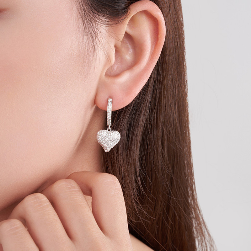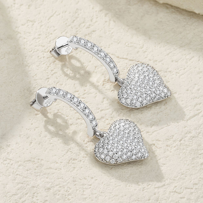 【莫桑鑽】爆閃愛心精工款176粒滿鑽S925銀鍍白金耳環