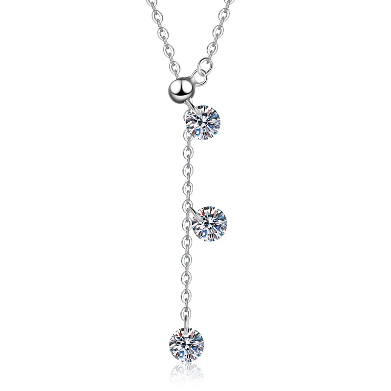 【莫桑鑽】三鑽流蘇50分*3顆S925銀鍍鉑金項鏈