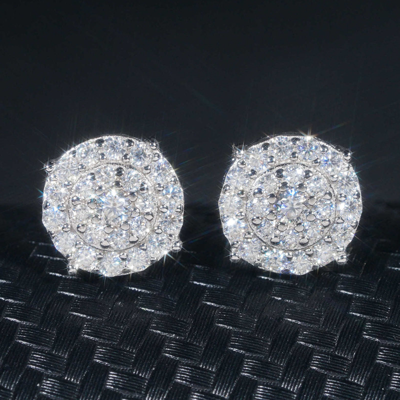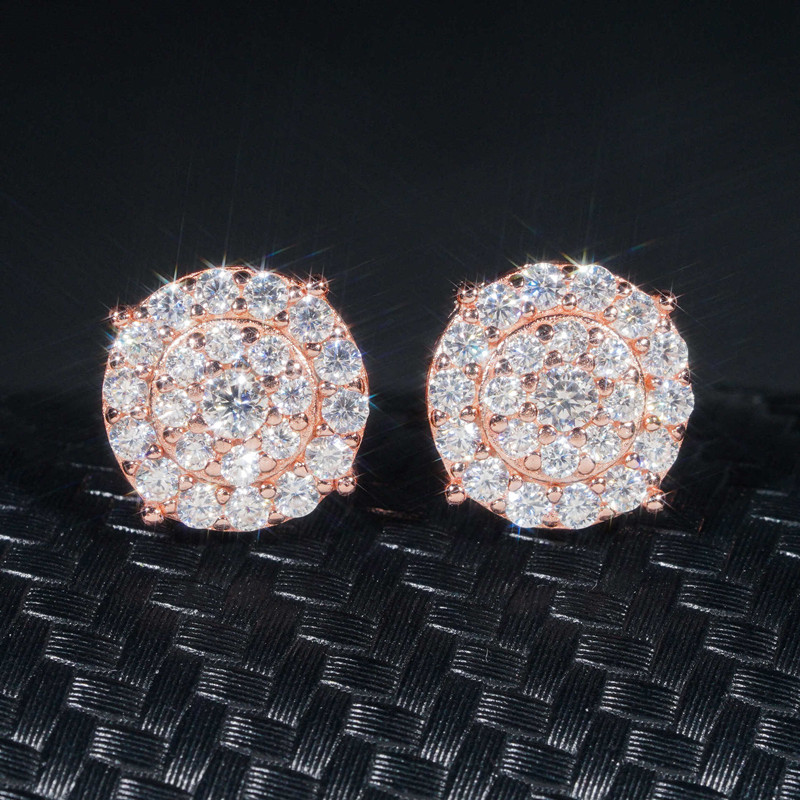 【莫桑鑽】三圈滿鑽S925銀鍍金耳環直徑10mm