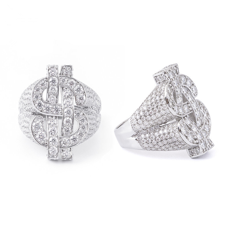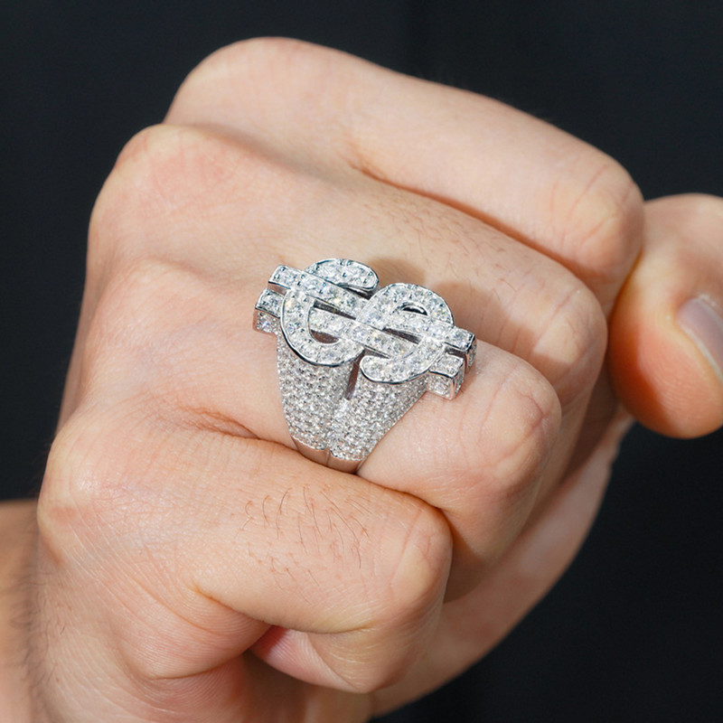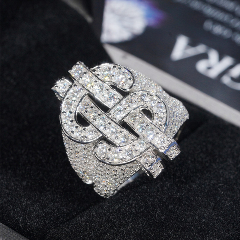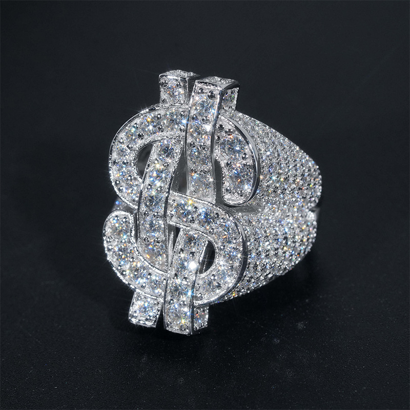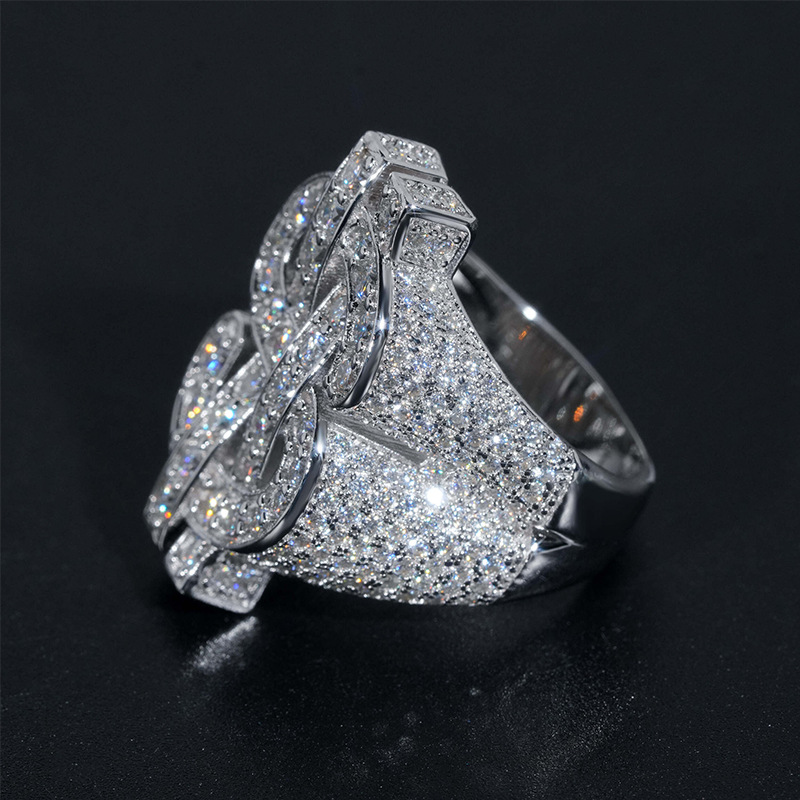 【莫桑鑽】來財HIPHO嘻哈風滿鑽豪華S925銀鍍白金莫桑石戒指