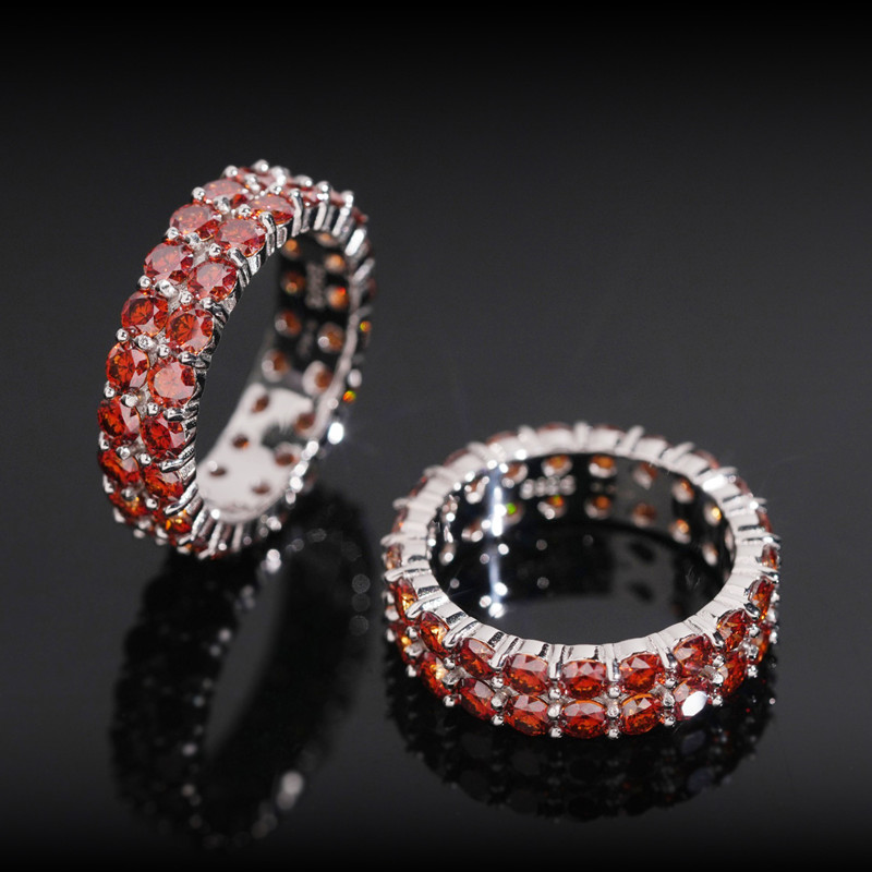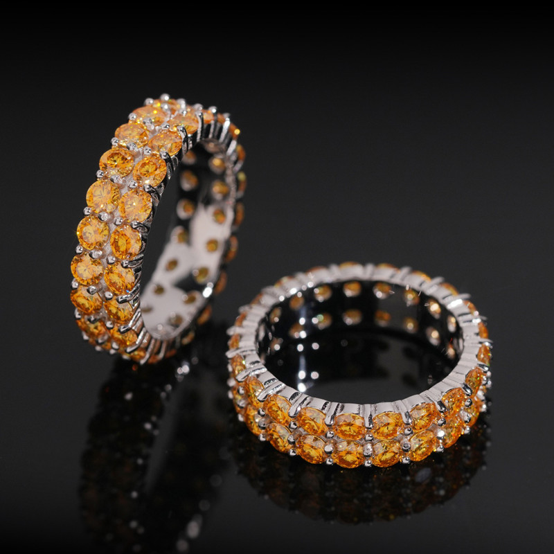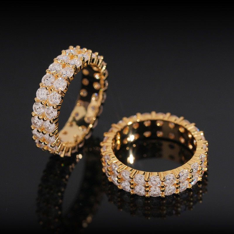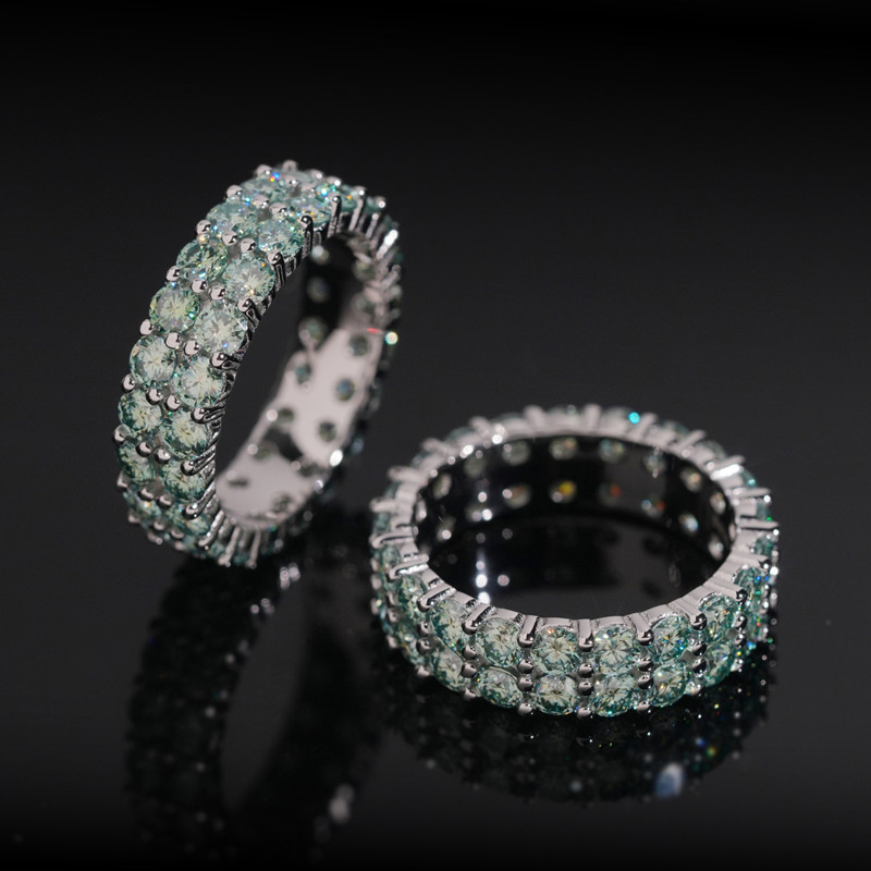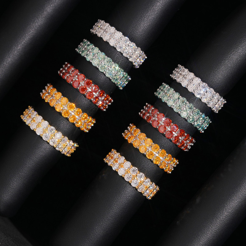 【莫桑鑽】男女同款3mm雙排圓鑽S925銀鍍金莫桑石戒指