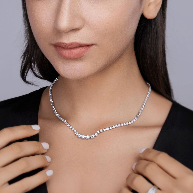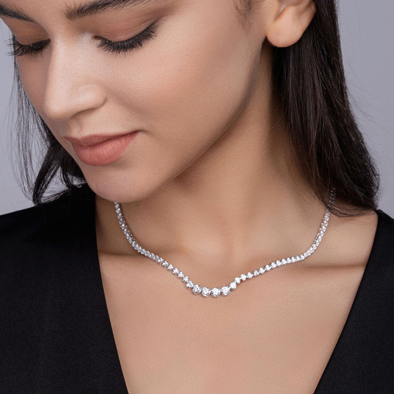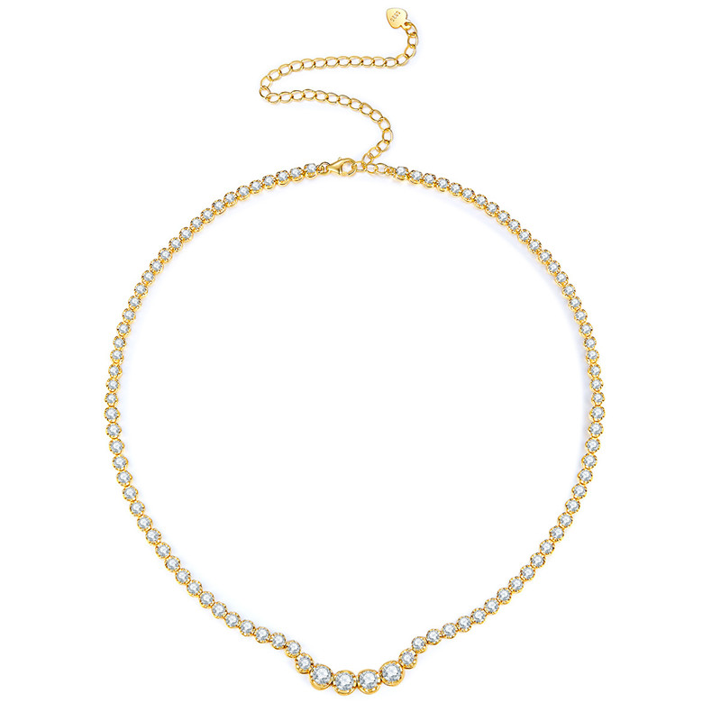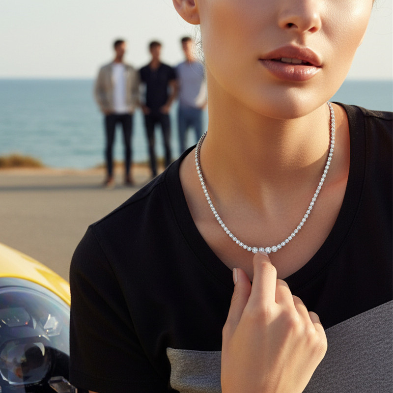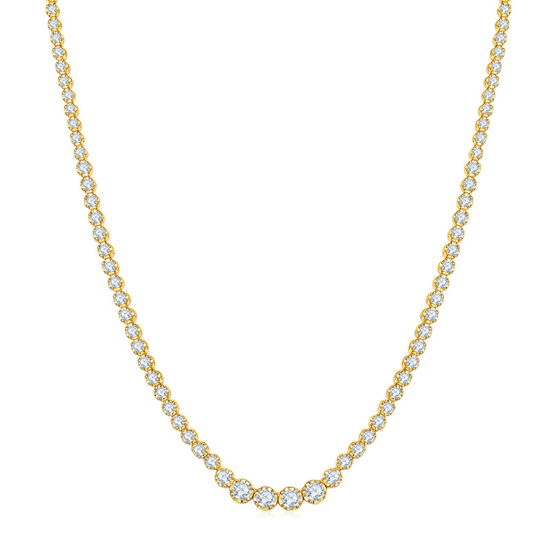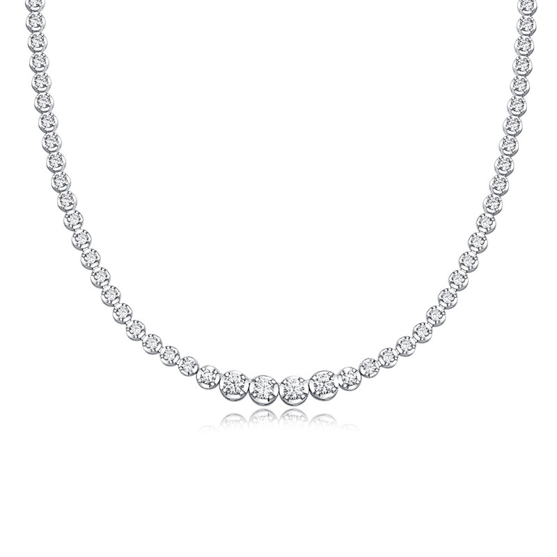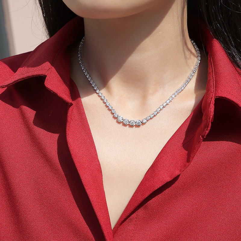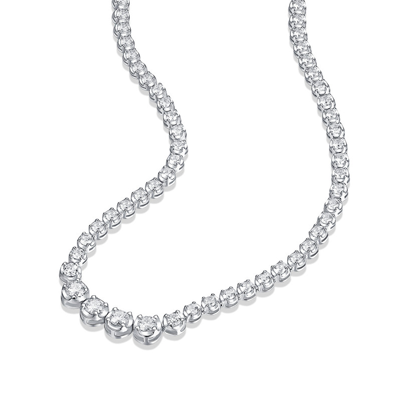 【莫桑鑽】光芒萬丈主鑽4mm*4pcs+5A級鋯石副石S925銀鍍白金項鏈40+10CM